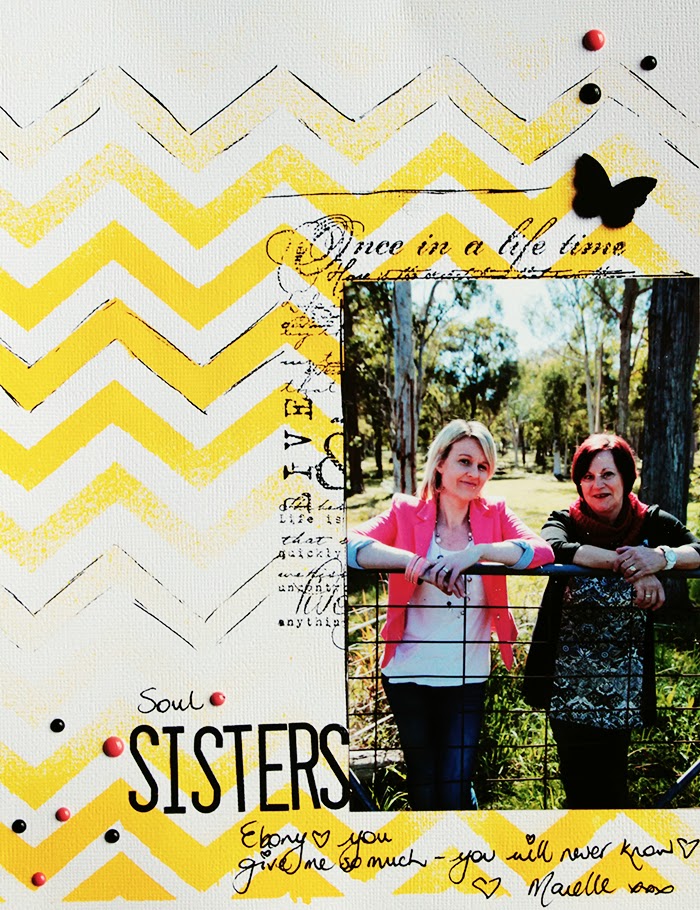 Now as you all know I am blessed to have Marelle as my dearest friend. She is always my rock and I love her to bits! She organised a photo shoot with the talented Jen Hall while at Camp Mojo and then secretly had a pic printed and scrapped for me. Yep, I cried xxxxx